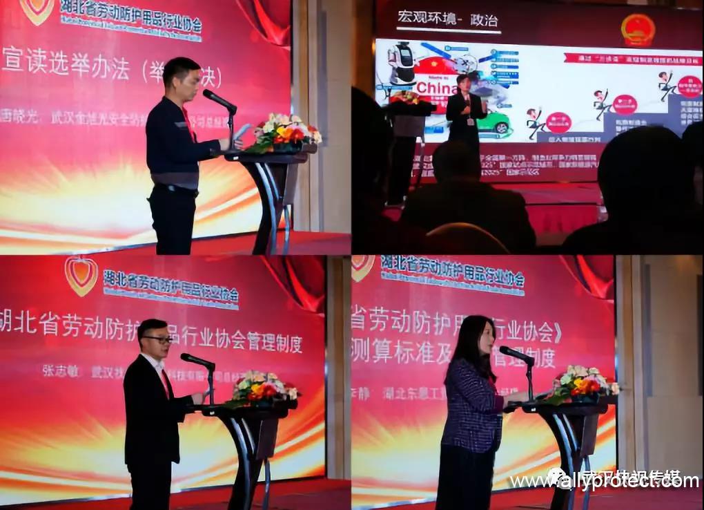 2019年3月9日,湖北省勞動(dòng)防護(hù)用品行業(yè)協(xié)會(huì)正式成立,協(xié)會(huì)第一屆第一次會(huì)員大會(huì)在武漢光明萬(wàn)麗大酒店召開(kāi)。湖北省民政廳社會(huì)組織管理局副局長(zhǎng)姜健,湖北省工商聯(lián)會(huì)員部部長(zhǎng)江勇,國(guó)家勞動(dòng)保護(hù)用品質(zhì)量監(jiān)督檢驗(yàn)中心武漢站主任劉宏斌、教授程鈞,中國(guó)紡織品商業(yè)協(xié)會(huì)安全健康防護(hù)用品委員會(huì)秘書(shū)長(zhǎng)高飛,浙江省安全健康防護(hù)用品行業(yè)協(xié)會(huì)秘書(shū)長(zhǎng)王良基,中國(guó)鐵路武漢局集團(tuán)有限公司物資供應(yīng)段主任趙恒,卓爾集團(tuán)商管處,湖北省企業(yè)國(guó)際合作協(xié)會(huì)等領(lǐng)導(dǎo)及嘉賓出席大會(huì),并致以祝賀。